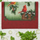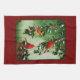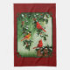 Ett par manliga och hona norrut kardinaler i ett holly träd, medan en tredje kardinal sitter på ett träträ av basket fyllt med nyplockat grovt löv och bär. Allt på en festlig helgdag röd bakgrund. Bilden skapades från en ursprunglig oljemålning av Crista Forest.