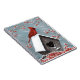 Akrylmålning av den röda nordkardinalfågeln på vintern snö. snö faller försiktigt på honom, fågelhuset och de frusna holländarna. Den ursprungliga krylmålningen av Donna Leger.Alla rättigheter förbehållna. ©ironisk design