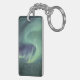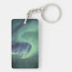 Naturfoto av mycket stark grönt och lila Norra Ljus (Aurora borealis) i den arktiska nordliga Norgen himlar, Skandinavien. Skogen i förgrunden är helt täckt i djupt snö. Fotoplats: nära gräns till Finland mellan Tromso och Kilpisjärvi. Photo © Sebastian Mask.
