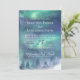 Romantiskt Norra ljus inbjöd bröllopet i nyans av blått, lila och grönt vattenfärg med högt bergsområde träd och himmel med tvillingande stjärnor för en liten gnistra.