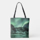 Ett naturfoto av den arktiska natten himlar ovanför NordNorgen fyllt med grönt NordLjus (Aurora borealis). Plats: Kvaløya, en ö endast väster av staden Tromsø.