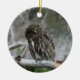 Norra Pygmy Uggla Ceramic Ornament. En liten nordlig Pygmy-Uggla som genomgick en träd-extrem. Foto av Dominik Van Opdenbosch.