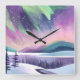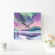Norrsken Färgrik Vinterkväll | Akvarell Fyrkantig Klocka