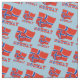 Norsk flagga eller Norsk flagg, vajar i bakgrunden. I förgrunden en fotboll eller fotball (norska för fotboll), kan ses. Under det hela står ordet NORGE, i flaggans färger.