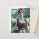 Denna bild visar en norsk kvinna i traditionell Bunad-anda, som återspeglar Norgens kulturella elegans och arv. Bunad är en vackert utformad och enastående rik med broderier och sjudande färg, som ofta symboliserar specifika regioner. I utrustningen ingår en skräddarsydd klänning med detaljerad mönster, kompletterad med en platta och en vit blus med puffade sleever. En silver-brok eller -klump tillför en liten bit av norsk hantverksverksamhet. Hennes nyformaterade hår och serenuttryck harmoniserar med det mjukt suddiga norska landskapet i bakgrunden, vilket förbättrar scenens äkthet. Denna attityd är en stolt återgivning av Norgens historia och konstnärliga tradition.