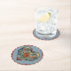 Detta papper underlägg en norsk Rosemaling Folk Heart-design på en samordnande blå bakgrund med ett rött gräns.