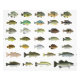 Rad 1: Rekära Sunfish, Warmouth Sunfish, Grönt Sunfish, Longear Sunfish, Bluegill Sunfish Row 2: Sten Bass, Northern Sunfish, Orange Spoted Sunfish, Redbrested Sunfish, Shadow Bass Row 3: Black Crappie, White Crappie, Pumpkinseed Sunfish, Banded Sunfish, Black Banded Sunfish Row 4: Dollar Sunfish, Ozark Bass, Bantam Sunfish, Roanoke Bass, Spoted Sunfish Row 5: Lera Sunfish, Red Spoted Sunfish, Flyer Sunfish, Blue Spoted Sunfish, Sacramento Perch Row 6: Smallmouth Bass, Spoted Bass, Guadalupe Bass, Redeye Bass Row 7: Suwanee Bass, Shoal Bass, Larouth Bass, Florida Largemouth Bass I Förenade Stater är solfisk en välkänd fisk. Medan vissa värderas som en livsmedelskälla värderas de flesta solfiskar särskilt för sportfiske och har införts i många områden utanför deras ursprungliga intervall. Centrarchidae som grupp kallas för solfiskare, men det finns arter som betecknas som bass, blåslor, pumpkinfrö och skrapor och så vidare.