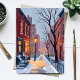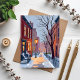 North End Vinter Boston Massachusetts Akvarell Målning Kort