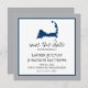 Spara Bröllop-meddelandet för Kap Cod bröllop. Navy Blue Karta of Cape Cod med rött hjärta över North Falmouth, Massachusetts. Färg är Grått och en marin blå trim. Om färg inte är vad du ville, så säg det till mig och jag återskapar det åt dig, men kontakta mig innan du beställer en beställning så att du kan skapa en ny design för dig att arbeta med. E-post: paula@labellarue.com Lycklig Bröllop Planning! Se till att du plockor din favoritkartong så att den trycks på.
