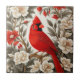 Northern Cardinal Bird Beautiful Floral Kakelplatta