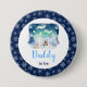 This cute and whimsical watercolor baby shower button features a watercolor winter wonderland scene with adorable arctic animals, such as a polar bear, penguin, cat, owl, seal and a moose. In the background are the northern lights, snow capped mountains and trees. The text combines handwritten script and sans serif fonts for a stylish and modern look. Falling snowflakes and beautiful blue floral arrangements give a winter feel. This is perfect for winter and Christmas baby showers.