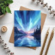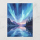 Northern Lights Lake Reflection Night Sky Vykort
