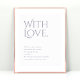 En tankfull och trevlig bröllop-skylt som säger: "Tack för att ni är här, med hjärtan fullt för att ni skapar i dag, kära vi kärlek, ni alla, med all vår själ när vi ger oss in på denna nya start."