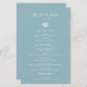 Den här bröllop-designen är en perfekt som blandar elegans och klassiskt format. Konstruktionens viktigaste kännetecken är en liten vit blommotiv som passar perfekt i mitten av den dammiga blå färgaden.