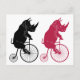 Noshörning ridande på en vintagecykel eller pennyfarthingcykel siluett. Ursprunglig svart illustration.