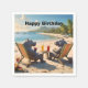 Under en blåmulen himmels strålar vilar två flodhästar i färgglada deckstolar på en lugn sandstrand. De smuttar på fruktiga drinkar garnerade med citron skivor. De milda vågorna sköljer mot stranden och reflekterar nyanserna av den blå himlen medan träden svajar i den varma brisen. Deras avspända kroppshållning och belåtna uttryck utstrålar semesterkänsla och förvandlar denna fantasifulla scen till en perfekt stund av tropisk lycka och bekymmersfri charm.