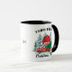 Det här söta mugg är en explosion från det förflutna, med den gamla reklamen för "Farm Fresh Julgranar". Tillsammans med den stiliserade texten är en vattenfärgsbild av en röd servergrupp lastbil som är laddad med grönten helgdag träd. En stor röd lada och snö täckt träd ligger i bakgrunden. Bilden skrivs ut två gånger på mugg, med anpassningsbarnas monogram eller namn mellan dem. Det här är en fin gåva till grannar eller vänner, särskilt när de är fyllda med godis!