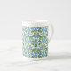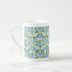 Chic Bone China Coffee eller Tea Mugg, med nostalgiskt mönster av ljusblå morgonglasögon på vit bakgrund. En del av "God morgon Glory"-samlingen Posh & Painterly. (mönster kommer att passa hela mugg.)