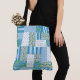 En mycket söt Tote Bag, med ett land stil Faux-lappverk av blommigt, polka-prick, stripe och kontrollera gingham mönster i blått, grönt och vitt. En del av "God morgon Glory"-samlingen Posh och Painterly, kommer att passa vilken Tote Bag som helst och kan anpassas genom att rotera mönster eller ändra för ett helt annat utseende.