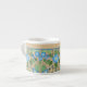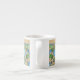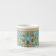 En söt liten Espressos-kaffe Mugg, med en nostalgisk mönster av ljusblå morgonglasblommor på en taupe-bakgrund. En del av "God morgon Glory"-samlingen Posh & Painterly.