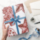 A nostalgic red Christmas gift wrap in vintage toile style, patterned with iced cookie shapes like stars and Christmas trees in delicate line art. The red on white look feels cozy and kitchen fresh, perfect for cookie exchanges, baker gifts, and festive packages. Pair with twine, velvet ribbon, or kraft tags for a classic finish.
