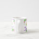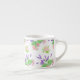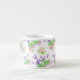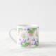 Söt Espressos-kaffe Mugg, med mönster i rosa ros, gråvit Mock Orange Blommar och lila Lavender, från en handmålad vattenfärgsdesign av Judy Adamson.