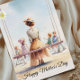 Hedra den tysta styrkan och ömheten i moderskapet med detta lugna nostalgiska akvarellkort för mors dag. Illustrationen fångar en fridfull kustnära stund - en mamma som sitter med sina barn och ser världen veckla ut sig. Mjukt ljus, milda toner och känsliga penseldrag skapar en lugnande och hjärtlig scen som speglar den stadiga kärlek som mammor ger varje dag.