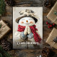 Nostalgisk akvarell Röd vit jul Tomte snöman Julkort