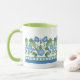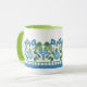 Nostalgisk blå morgonblomma blomsterkant, vit mugg