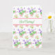 En mycket söt får ett bra kort med framsidan hälsning på danska och mönster i rosa ros, en grå vit Mock Orange och lila Lavender på vit bakgrund, från en handmålad vattenfärgsdesign av Judy Adamson. Insidan lämnas tom för ditt eget meddelande.