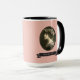 Det här nostalgiska mugg har ett foto av en vacker flicka från Viktorian. Bakgrunden färg matchar de rosa blommorna i hennes hår.