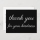 Denna nostalgiska, gammaldags tack-vykort design har meddelandet " tack för din vänlighet " på framsidan, tillsammans med ett anpassat meddelande på baksidan. Det kan användas för att tacka någon som har gjort något trevligt.
