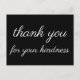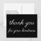 Denna nostalgiska, gammaldags tack-vykort design har meddelandet " tack för din vänlighet " på framsidan, tillsammans med ett anpassat meddelande på baksidan. Det kan användas för att tacka någon som har gjort något trevligt.