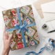 Denna pappra omslutning har en vintage som inspirerats av och som upprepar diamant mönster med olika festillustrationer. Varje diamant innehåller en annan motiv för helgdag, som Jultomten ansikte: Skymd med rosinfusk, vita skägg och röda hattar. Snögubbar: Illustrerad med top hat och morotnäsa. Viktorianska barn: Visas i klassisk helgdag. "Säsonhälsningar"-banderoller: I ett dekorativt teckensnitt. Diamanterna skisseras med ett guld, texturerat gräns, och bakgrunden har ett subtilt, parchment-liknande utseende, vilket bidrar till det övergripande helgdag för retro och elegant.