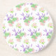 En söt sandsten underlägg med en mönster av rosa ros, gräddvit Mock Orange Blommar och lila Lavender, från en handmålad vattenfärgsdesign av Judy Adamson.