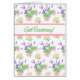 En mycket söt får ett bra kort med framsidan hälsning på tyska och en mönster av rosa ros, grå vit Mock Orange och lila Lavender på vit bakgrund, från en handmålad vattenfärgsdesign av Judy Adamson. Insidan lämnas tom för ditt eget meddelande.