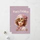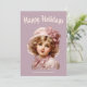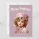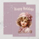 Återuppta de gamla goda tiderna med denna vintage- och nostalgiska illustration av en flicka i rosa med dansande snöflingor i luften. Anpassa framsidan med din text och signatur. Baksidan har en enfärgad färg med några snöflingor. Skriv en hälsning här efter eget tycke.