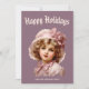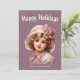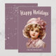 Nostalgiskt flicka i rosa julkort