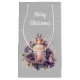 Nostalgiskt och Luxurious Merry Cristmas-presentväska. Illustration av exklusiv parfym omges av dansande snö kristaller. En lyxig presentpåse för den speciella gåvan. Anpassa med ditt textval både fram och tillbaka. Ha ett nostalgiskt God jul. Finns i olika färg, storlekar och avslutar. Här en silver-grått-presentpåse färg.