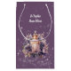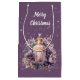 Nostalgiskt och Luxurious Merry Cristmas-presentväska. Illustration av exklusiv parfym omges av dansande snö kristaller. En lyxig presentpåse för den speciella gåvan. Anpassa med ditt textval både fram och tillbaka. Ha ett nostalgiskt God jul. Finns i olika färg, storlekar och avslutar. Här är en lila presentpåse färg.
