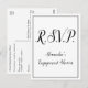 Den här nostalgiska, klassiska vykortsdesignen för OSA innehåller meddelandet "R.S.V.P." på framsidan, tillsammans med en anpassade-händelse namn. Det innehåller också ett formulär för OSA av anpassade på baksidan som mottagaren kan fylla i, tillsammans med ett anpassade adress som den ifyllda OSA kort skulle skickas till. OSA kort som detta skulle kanske kunna användas för att ta reda på vem som kommer att delta i en födelsedagsfest, en studentfest, en babydusch eller något annat firande.