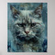 Hyper-realistiska katt porträtt i ett painterlyskt stil med uttryckliga penseldrag. Nattscenen i städerna med en melankolisk atmosfär, fångad i ett nära perspektiv. färg-palett med coola och med muterade färger, gröntar och subtila tips av varmt färger för kontrast. Målningen har en texturerad, nästan grov avsluta, med synliga penseldrag. Framhäver den tunna detaljen samtidigt som du låter områden med abstraktion i bakgrunden skapa en dynamisk känsla för contemporaryn.