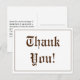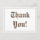 Denna vintageinspirerade tack-vykortdesign har meddelandet "Tack!" på framsidan, tillsammans med ett anpassat meddelande på baksidan. Det kan användas för att tacka någon som har gjort något trevligt.