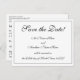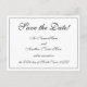 Den här nostalgiska och traditionella vykortsdesignen i stil spara-till-datum innehåller meddelandet "Spara datum!" på framsidan, tillsammans med anpassat namn, ett datum och händelseinformation. Sådana vykort skulle kunna användas för att ge ge ett huvud till potentiella gäster från ett kommande bröllop firande eller något annat evenemang.