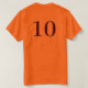 Orange skjorta med gult- och blåtthandstil. En numrera på baksidaen därför att dess en fotbollskjorta/jersey. Nöten är fotbollbollarna, som, om en är till respektfotboll.