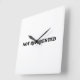 A bold statement for your wall that tells more than just the time. This modern square clock features heavy retro-serif typography on a clean white face.
