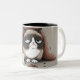This humorous illustration perfectly captures the essence of a rough morning. A very grumpy cat, huddled under a brown blanket, looks completely unamused with the start of the day. Next to it, a mug of coffee sits with a small spill and scattered beans, adding to the chaotic, "not-ready-for-this" vibe. The feeling is perfectly summed up by the witty caption "NoT Tomor:DAY," making it a hilariously relatable image for anyone who has ever wanted to hit the snooze button on life.