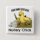 Annonsera din mobila notarie eller låne som undertecknar agent-verksamhet med en liten bit humor. Den vita designen har en söt chick av gulten omgiven av dokumentstaplar och flaska av jet blanka bläck. Hon håller en känslig gult, fjäder, över sloganen "Notary Chick". Knappen personlig ger en underbar gåva till vilken notarius professionell som helst som tillhandahåller en värdefull tjänst till allmänheten. Denna utformning av den notarie chicken lämpar sig för vit bakgrund och bakgrunder av lätt färgad. Anpassa genom att ändra "Ditt namn går hit" till en namn, plats eller valfri annan text. Designtips: Under lång namn kan du behöva justera texten storlekt.