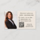 Ett modernt affärskort på en beige bakgrund. Svart text. Anpassa och lägg till ditt namn, text, profilfoto, logotyp, kontaktinformation och din egen QR-kod till webbplatsen adress.