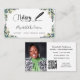 En vit bakgrund som dekorerats med eukalyptus greenery och en svart namnteckning att man skriver på pennan på framsidan. Elegant-handskript i stil. Anpassa och lägg till ditt namn, text, profilfoto, kontaktinformation och din egen QR-kod till webbplatsen adress.